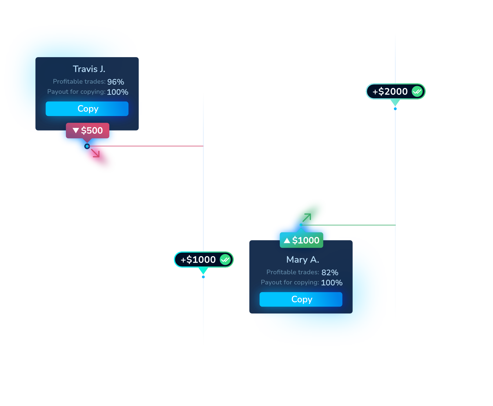 Copy the trades of the most successful traders with just one click or set it to happen automatically